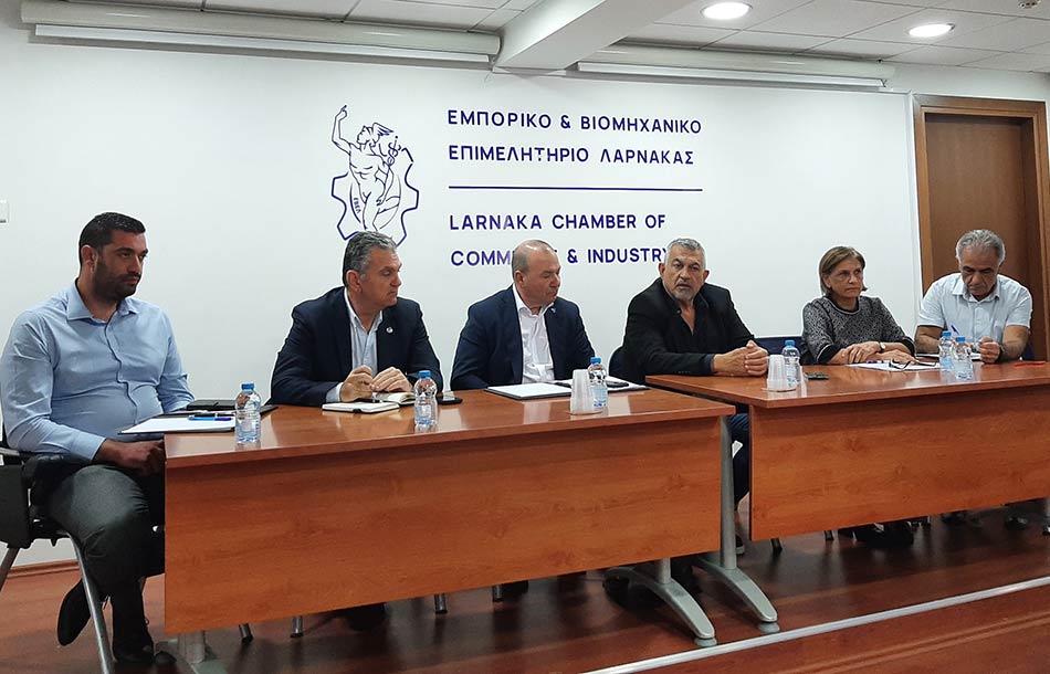 Σημαντική ενημερωτική συνάντηση πραγματοποιήθηκε την Τρίτη 6 Μαΐου 2025 στα γραφεία του Εμπορικού και Βιομηχανικού Επιμελητηρίου Λάρνακας (ΕΒΕΛ), με τη συμμετοχή του Προέδρου Δρ. Νάκη Αντνωνίου και των μελών του Δ.Σ. του ΕΒΕΛ, του Προέδρου του ΕΟΑ Λάρνακας κ. Άγγελου Χ” Χαραλάμπους, του Γενικού Διευθυντή του ΕΟΑΛ κ. Σοφοκλή Χριστοδουλίδη, της κ. Λένιας Ζαχαρίου Προσωρινής Διευθύντριας Πολεοδομικού Ελέγχου και του κ. Χαράλαμπου Χαραλάμπους προσωρινού Διευθυντή Οικοδομικού Ελέγχου. Στη συνάντηση συμμετείχαν επίσης επιχειρηματίες του τομέα ανάπτυξης γης.