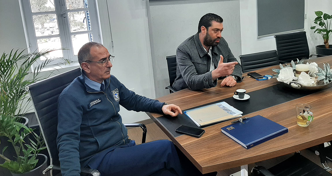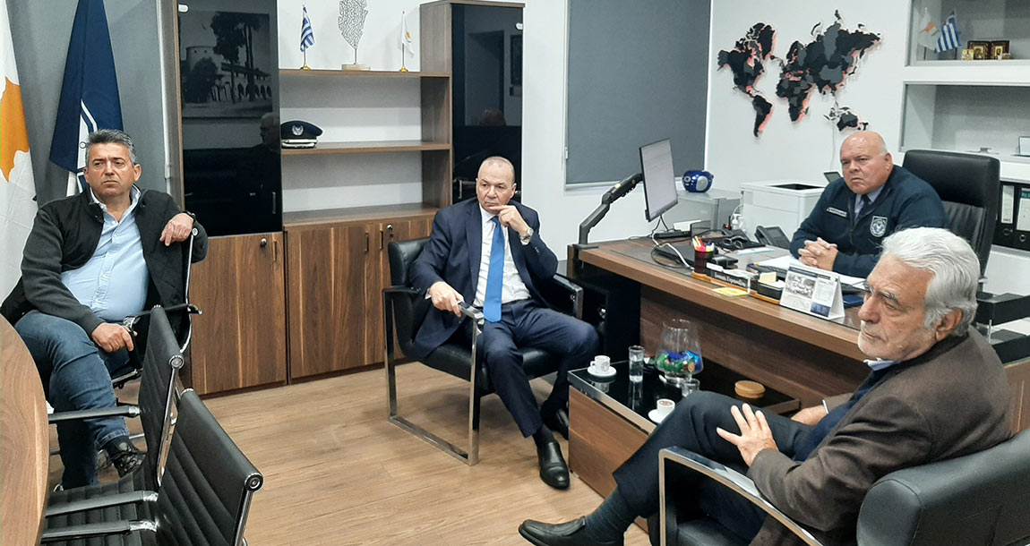 Ο Πρόεδρος του ΕΒΕ Λάρνακας Δρ. Νάκης Αντωνίου, συνοδευόμενος από τον Επίτιμο Πρόεδρο κ. Όθωνα Θεοδούλου, τον Αντιπρόεδρο Τουρισμού κ. Λουκά Λουκά, τον Διευθυντή του ΕΒΕΛ κ. Χαράλαμπο Ανδρέου και τον Λειτουργό του ΕΒΕΛ κ. Δημήτρη Χρίστου, επισκέφθηκαν την Αστυνομική Διεύθυνση Λάρνακας, όπου πραγματοποίησαν συνάντηση με τον νέο Αστυνομικό Διευθυντή Λάρνακας κ. Ιωάννη Καπνουλλά στην παρουσία του Βοηθού Αστυνομικού Διευθυντή κ. Χάρη Χατζηγιασεμή.